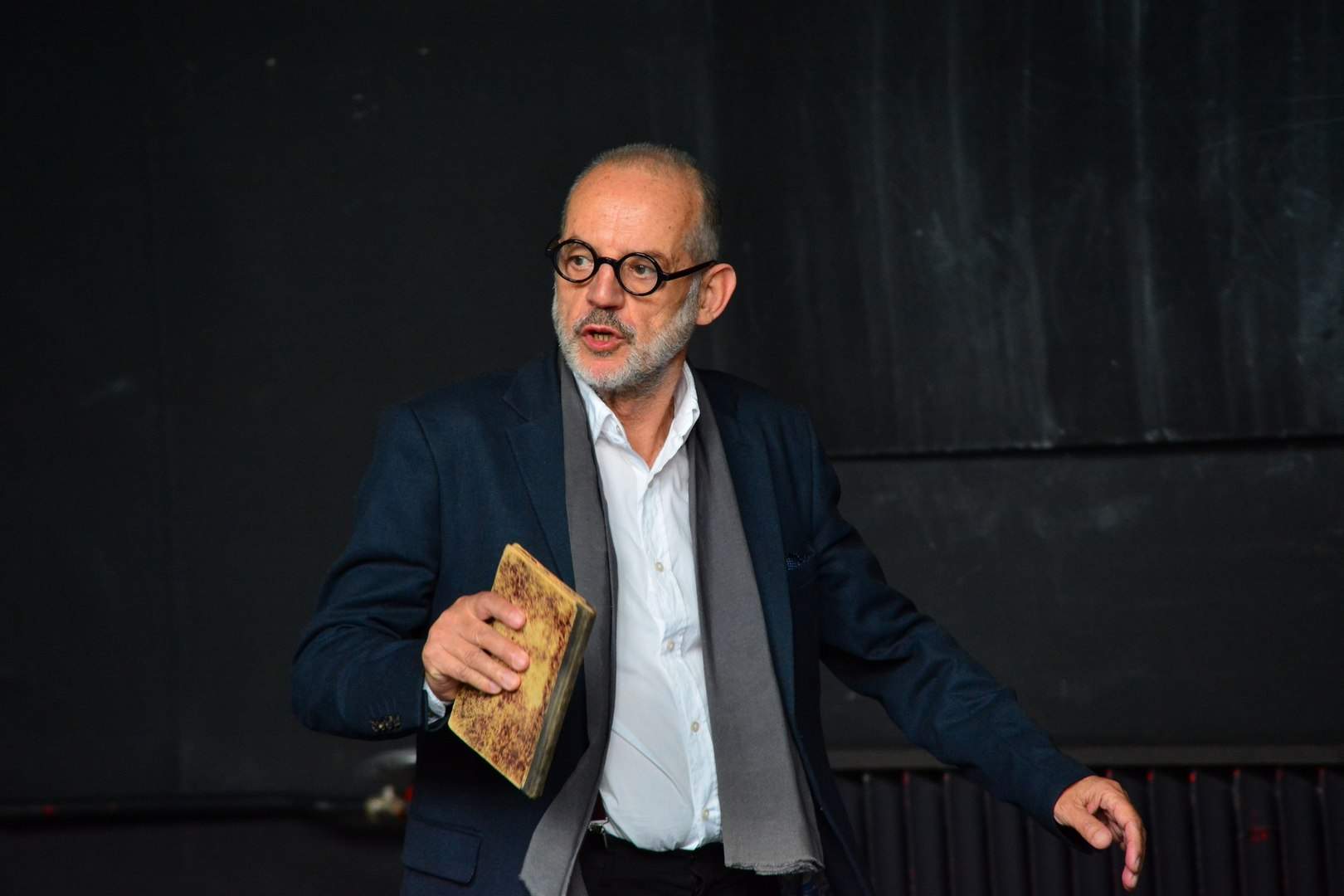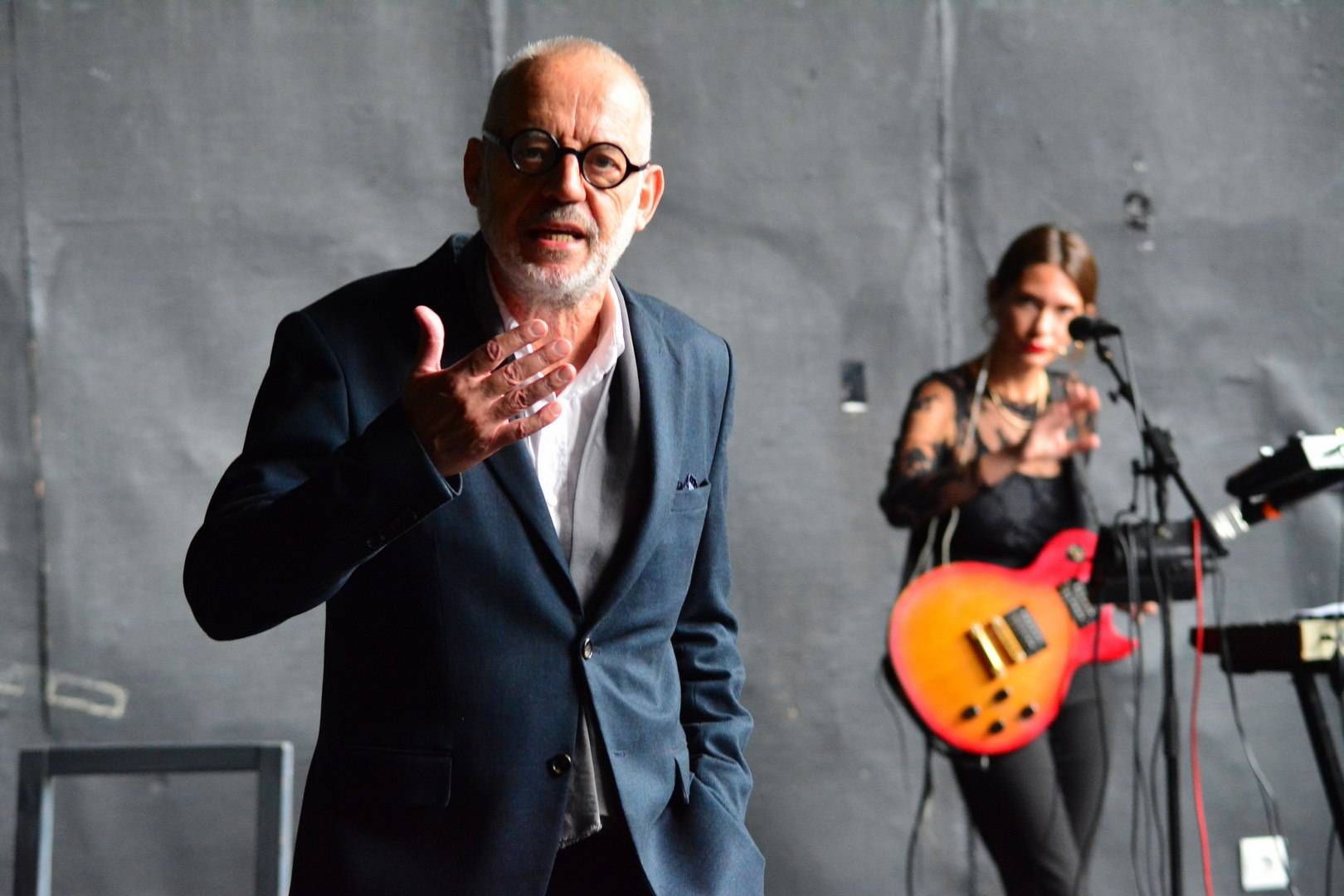 “Nakon Arsena, koji mi je predložio da Ujevića izvodimo u dva glasa, odlučio sam pozvati Saru koja me svojim pjevom i glazbom podsjeća, kako bi rekao Tin, na osobu složenu od više drugih. Anica Tomić redateljskim umijećem dobro je osjetila ritmove nemirne ispovjedi genijalnog pjesnika. Marko Mijatović oblikovao svjetlo i sjene za San i ludilo. Ivana Vučić s posebnim dizajnerskim rafinmanom osmislila i oblikovala vizualni identitet predstave. Ujević je naš Anđeo tuge, nomad ljepote i zato mu se ponovno vraćamo. G.M. Ujević za sebe tvrdi da je “jedna osoba složena od više drugih”. Svoja nova lica Tin otkriva u gradovima koje je mijenjao u potrazi za samoćom. Samoća ga dovodi u poziciju da gledajući u sebe, vidi svekoliku dramu svijeta.